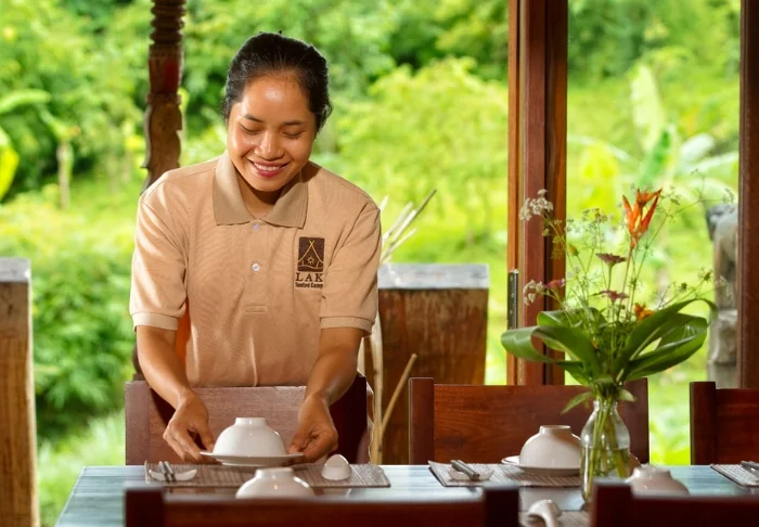 Lak Tented Camp wurde in enger Zusammenarbeit mit der Lokalbevölkerung aufgebaut und wird überwiegend von Angehörigen der M‘nong-Minorität aus den umliegenden Dörfern betrieben. Sie sind warmherzig, entgegenkommend und neugierig und Gäste erinnern sich häufig und gerne an ihr freundliches Wesen. Der Service ist nicht immer unbedingt perfekt, aber alle sind gewillt, zu lernen und sich weiterzuentwickeln. Man begegnet Ihnen mit aufrichtigem Interesse und wenn Sie ihnen ein wenig Englisch beibringen möchten, bringt man Ihnen auch gerne einige M‘nong Vokabeln bei.