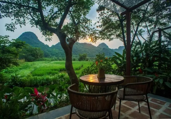In der wunderschönen Landschaft südlich von Hanoi, zwischen Reisfeldern und Kalksteinbergen, befindet sich das ruhige und friedliche Tam Coc Rice Fields Resort.