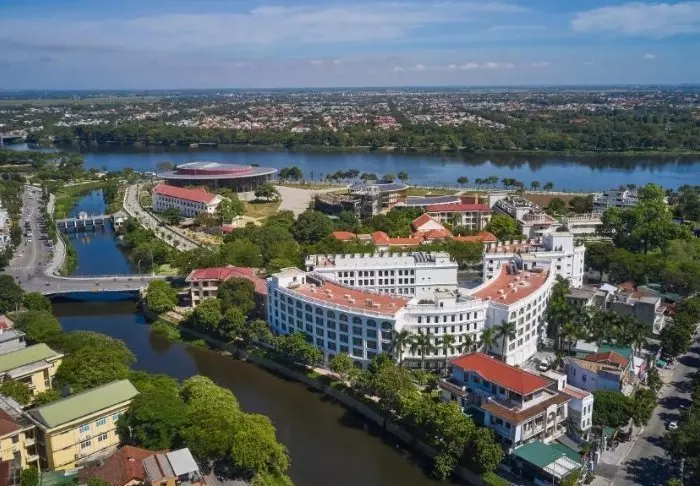 Das White Lotus Hué überzeugt durch seine erstklassige Lage im modernen Viertel von Hué, nur wenige Gehminuten vom Parfümfluss entfernt und in unmittelbarer Nähe zu Restaurants, Geschäften und lokalen Märkten. Das moderne Hotel erhebt sich majestätisch mit Ausblick auf die umliegenden Berge – ein spannender Kontrast zur historischen Kaiserstadt auf der anderen Flussseite.