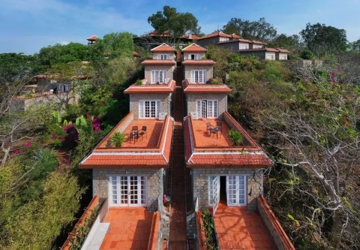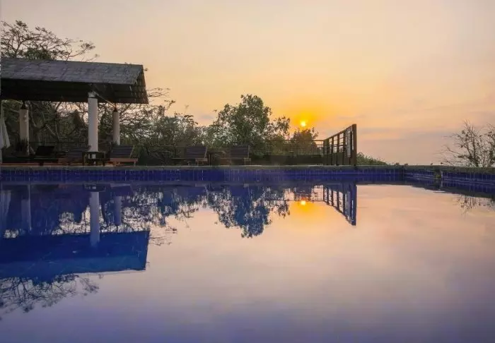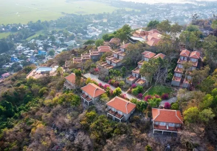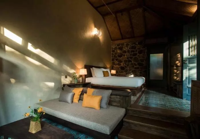 Die 26 Bungalows wurden aus Stein errichtet, sodass sie sich herrlich in die Umgebung am Berghang fügen. Alle Zimmer sind modern und minimalistisch eingerichtet, besonders Stein und Holz wurden für die Einrichtung verwendet. Die Farben sind dezent und passen zu den Kontrasten vor dem Fenster. Alle Zimmer verfügen über ein eigenes Bad/WC, ein TV-Gerät, eine Minibar, einen Föhn, eine Tee-/Kaffee-Ecke und Zugang zur Terrasse. Sowohl der Sonnenauf- als auch der Sonnenuntergang sind vom Hotel aus einfach magisch. Die Lodge bietet einen Pool und ein eigenes Restaurant.