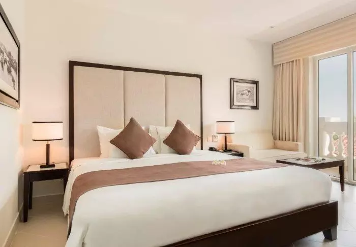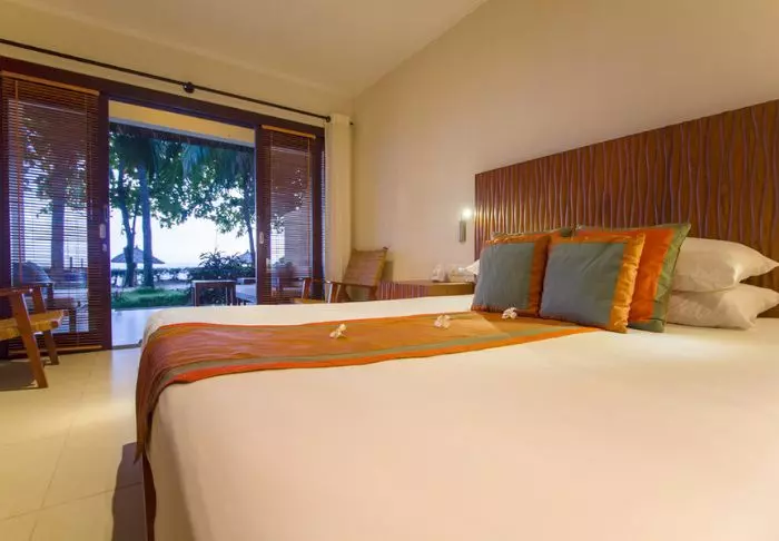 Das Resort besteht aus 110 Zimmern und Villen mit mind. 31 m2 geräumigen Zimmern. Sämtliche Zimmer sind hell und mit dunklen Holzmöbeln eingerichtet. Es gibt alles, was man für einen komfortablen Aufenthalt so braucht: WLAN, Klimaanlage, Minibar, Tee- und Kaffee-Ecke, gratis Wasserflaschen, Safe, Telefon und TV-Gerät. Im Badezimmer findet man Bademäntel, einen Föhn und kostenlose Toilettenartikel. Von ihrem eigenen Balkon aus überblicken Sie den Garten und die vielen Palmen, die im Wind wogen.