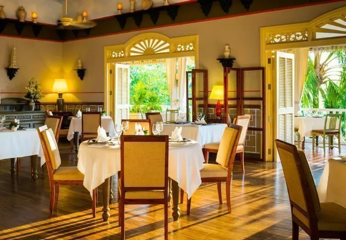 Im Resort gibt es zwei Restaurants. Außer dem Hauptrestaurant The Pepper Tree befindet sich hier auch noch das Restaurant Le Jardin, ein Restaurant im Freien mit einer wunderschönen Aussicht aufs Meer. Dort können Sie das Mittagessen, einen Nachmittagssnack oder ein Getränk im Sonnenuntergang genießen. Nach Sonnenuntergang öffnet die Loungebar, in der viele bunte Getränke bestellt werden können.