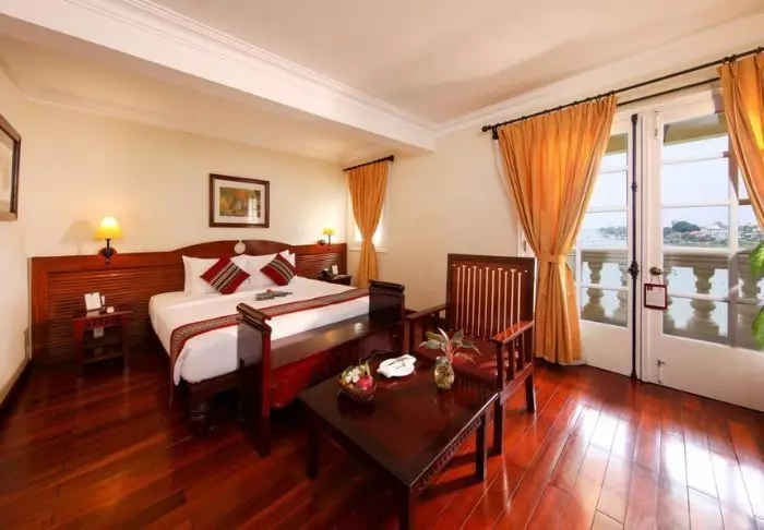 Die Zimmer des Hotels sind elegant im traditionellen Stil eingerichtet und bieten eine spektakuläre Aussicht auf den Fluss Mekong und die umliegende Landschaft. Jedes Zimmer verfügt über sämtliche Annehmlichkeiten, die man für einen komfortablen Aufenthalt so braucht: WLAN, Klimaanlage, Minibar usw. Zu jedem Zimmer gehört entweder ein Balkon oder eine eigene Terrasse. Dort kann man sich entspannen und die Natur in vollen Zügen genießen.