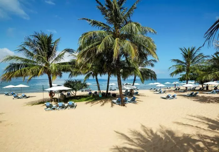 Unter den wiegenden Kokospalmen von Mui Ne finden Sie das Blue Ocean Resort mit einer fantastischen Lage am weißen Sandstrand von Mui Ne. Perfekt zum Relaxen und für gemütliche Spaziergänge am Strand, während die Wellen sanft ans Ufer rollen. Gleichzeitig befinden sich Restaurants, Cafés und Geschäfte in direkter Nähe, da die Hauptstraße der Stadt nur wenige Schritte vom Eingang des Resorts entfernt liegt.