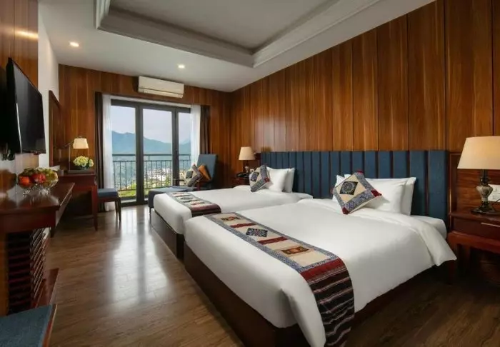 Das Hotel verfügt über 103 Zimmer, die alle eine Aussicht auf den Berg Ham Rong und den Sapa Lake bieten. Die modern und in beruhigenden Farben eingerichteten Zimmer sind mit Klimaanlage, TV-Gerät, WLAN, Safe, Minibar, Schmink-/Schreibtisch und Wasserkocher für Tee und Kaffee ausgestattet.