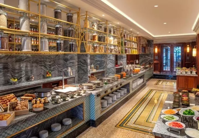 Das Frühstück wird als Buffet mit einer gelungenen Mischung vietnamesischer Spezialitäten und internationaler Gerichte angeboten. Sie können im Hotel zu Mittag essen oder im Viertel zusammen mit Einheimischen und Touristen dampfende Schalen Pho und kaltes Saigon-Bier genießen.