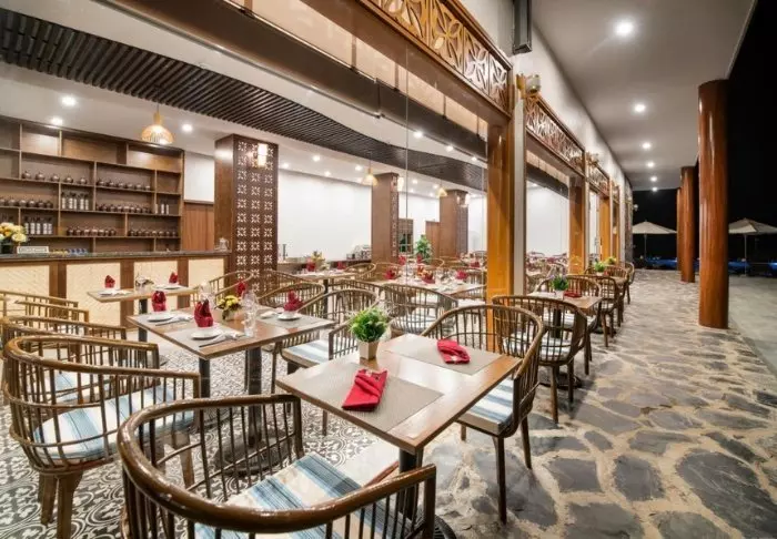 Wenn der Hunger kommt, besuchen Sie das Hotelrestaurant The Spice House, dessen Speisekarte vietnamesische Spezialitäten und mediterran inspirierte Gerichte bietet – alles frisch zubereitet. Lassen Sie abends Ihren Tag an der Strandbar The Malabar ausklingen. In entspannter Atmosphäre werden hier Cocktails, Bier und klassische Drinks serviert, während das Meeresrauschen für die passende Hintergrundmusik sorgt.