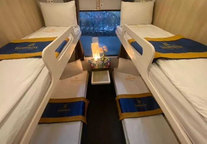Der Nachtzug Damitrans bringt Sie von Hanoi nach Da Nang. Sie schlafen in einem geteilten Schlafwagen mit Platz für insgesamt 4 Personen. Der Zug hält unterwegs an mehreren Bahnhöfen an, bis Sie wohlbehalten in Da Nang ankommen.