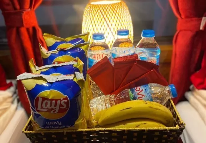 Im Schlafabteil gibt es ein kleines Willkommenspaket mit Obst, Snacks und Wasser. Wir empfehlen jedoch, dass Sie zusätzliches Essen und Getränke für die Reise kaufen, bevor Sie an Bord gehen.